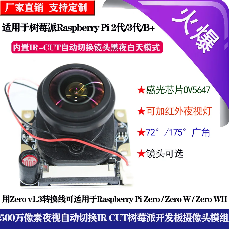 175 Degree Raspberry PI Camera Raspberry PI 3rd Generation B + / 4th Generation IR CUT Automatic Da