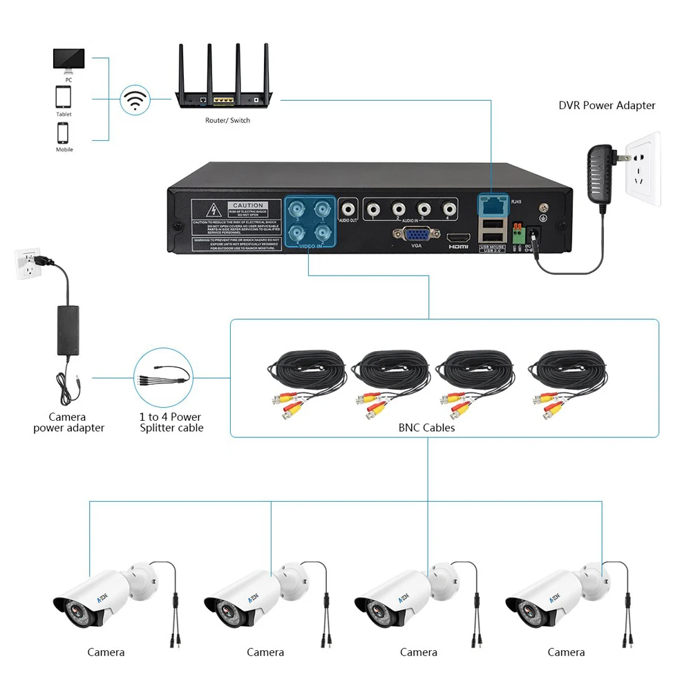 AHD Camera System CCTV Home Security Video Surveillance Kit 960P AHD DVR with 4PCS Outdoor Indoor N