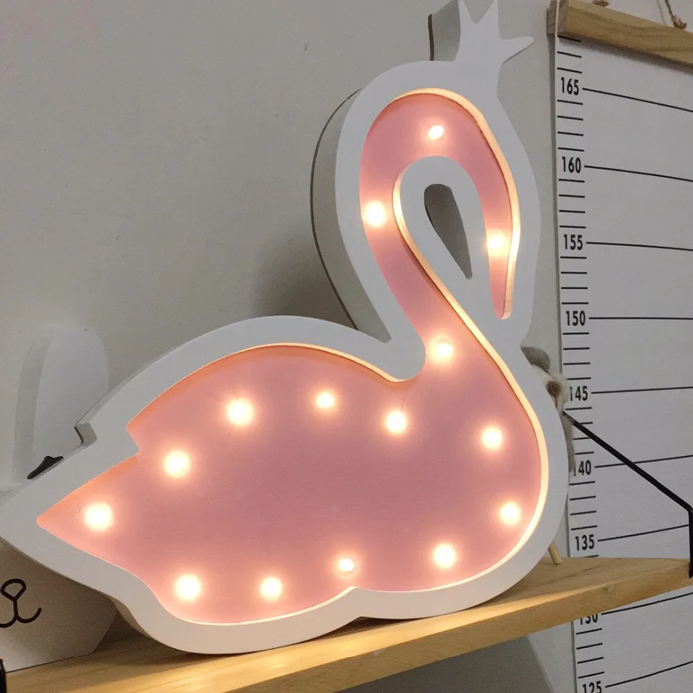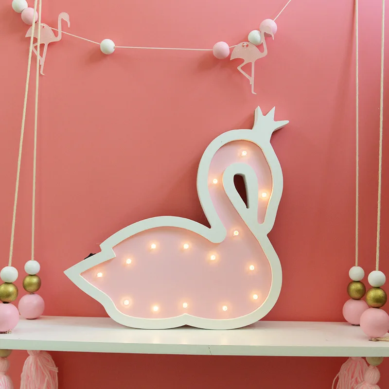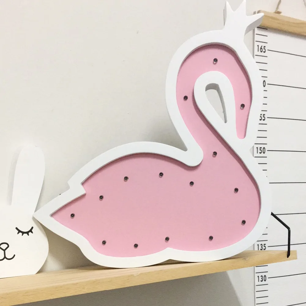 BEST Nordic Nursery Decor Wooden Pink Swan LED Night Light Girs Room Decoration Scandinavian Children's